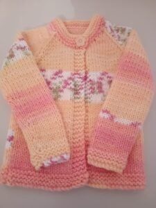 Good evening . I was commissioned to knit a cardigan for a little girl . The cardigan is a gift for Easter.